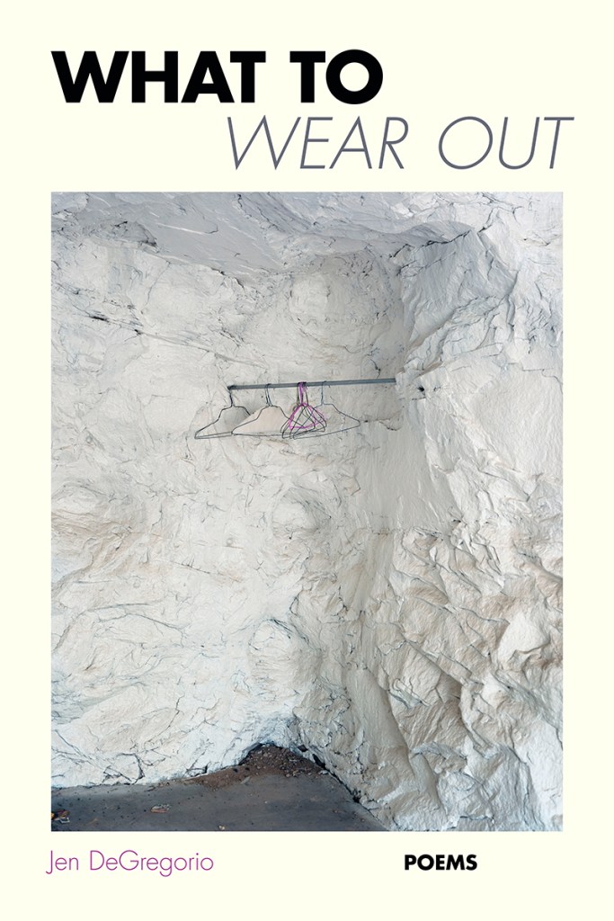 “Short on cash, desperate on Craigslist, contemplating kidney donation and divorce, complicity and debt, the speaker in Jen DeGregorio’s What to Wear Out is perceptive, unflinching, obsessed with trying to see clearly. Hungry and wary, she knows ‘the world is ending, after all’ and also that ‘nostalgia’s/a drug, it’s a cop out’— that absolution is temporary, and that precarity and desire rhyme. Wielding the line break with thrilling precision, this poet swerves us always toward the heat, the difficult heart. I read this collection on the edge of my seat. A searing and accomplished debut.”